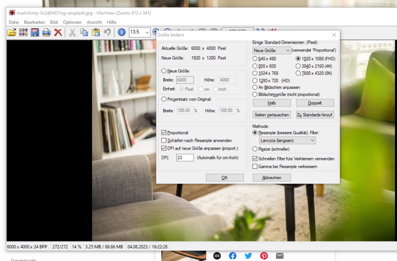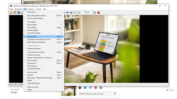 Jetzt reduzieren wir die Bildgröße, da die Website ansonsten zu lange laden muss.