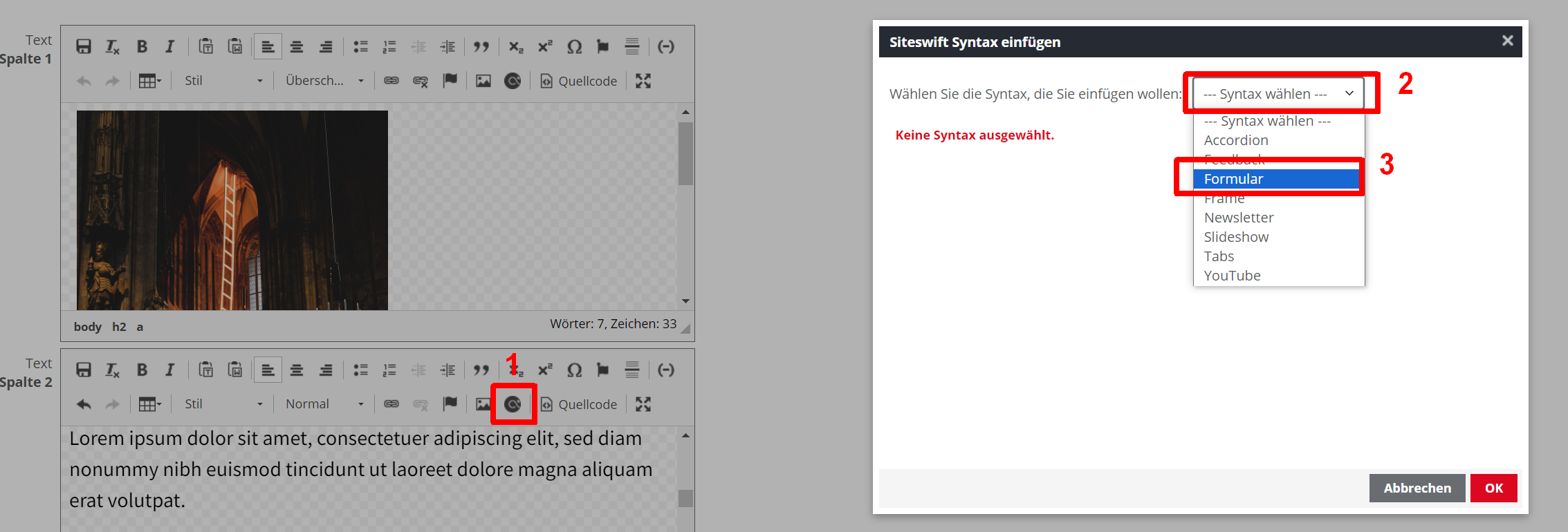 (1) „SWSLang“ > (2) Syntax wählen (3) Formular
