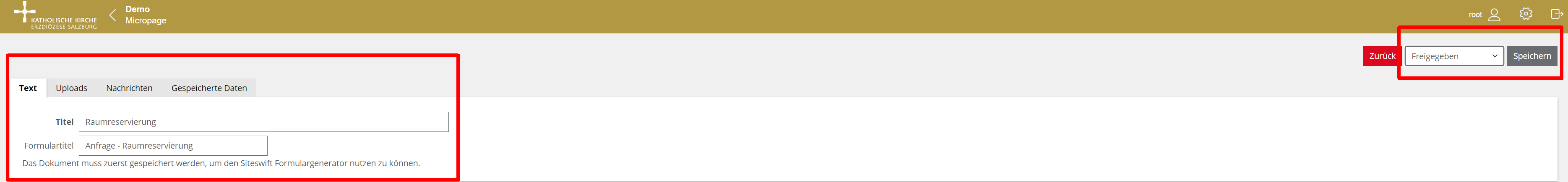 Titel und Formulartitel vergeben, Freigeben und speichern.
