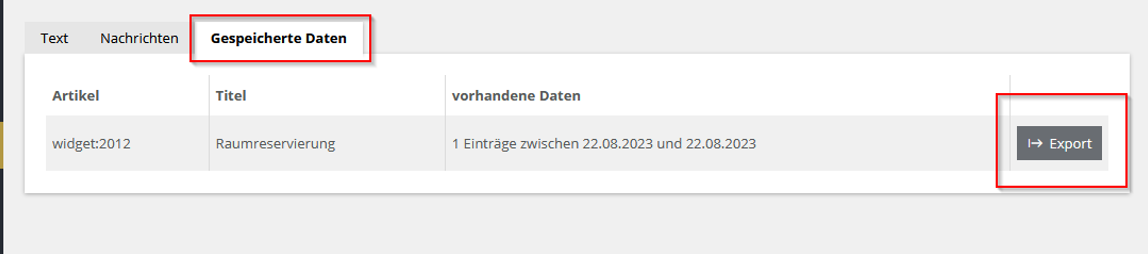 Die bereits eingegangenen Formulare befinden sich unter „Gespeicherte Daten“ und können auch als Excel File exportiert werden