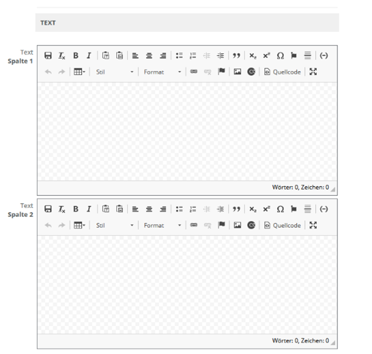 Das 2-Spalten-Widget hat zwei Spalten. Es gibt zwei Felder, in die geschrieben werden kann: