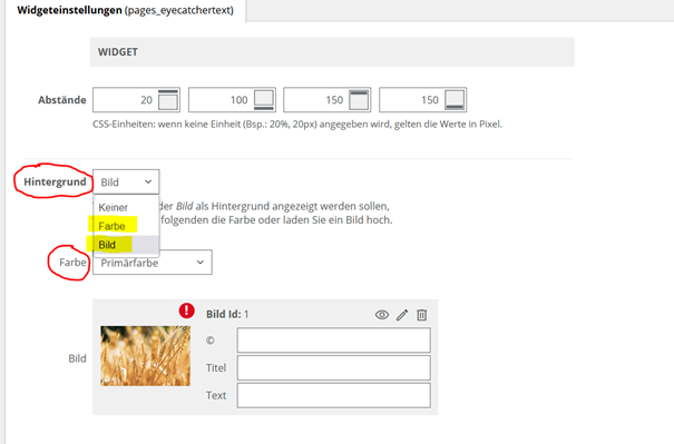 Hier besteht die Möglichkeit einen Kasten mit einer Hintergrundfarbe oder einem Hintergrundbild zu erstellen. Optional ist auch noch ein Icon auswählbar.