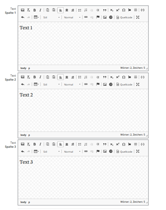 Das 3-Spalten-Widget hat drei Spalten. Es gibt drei Felder, in die geschrieben werden kann: