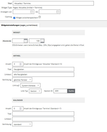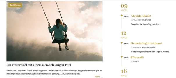 Hier werden die Zentral eingegebenen Artikel und Veranstaltungen dargestellt