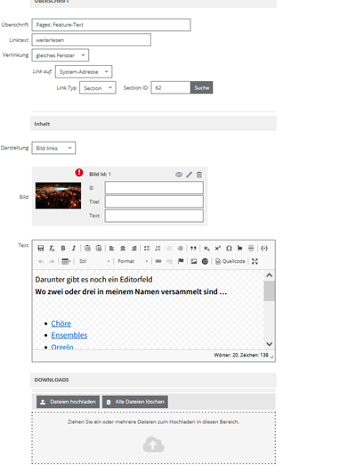 Mit diesem Widget können Sie eine besondere Veranstaltung oder andere wichtige Themen umfangreich gestalten und Dokumente bereitstellen