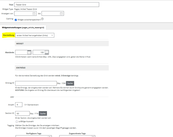 Hier können entweder aus einer Section oder von Ihnen ausgewählte Artikel dargestellt werden