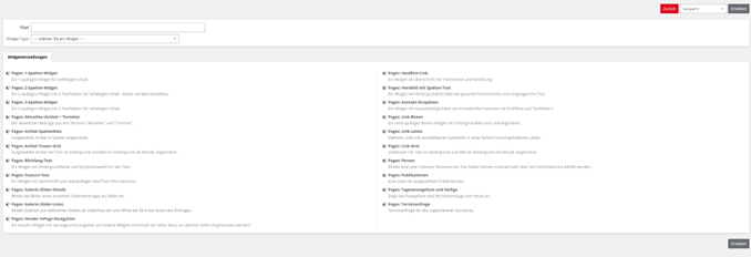 Hier finden Sie eine Auflistung aller zur Verfügung stehenden Widgets