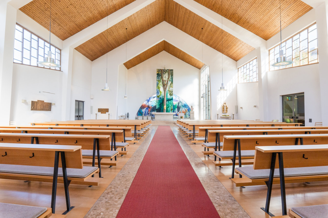 Planung und Kirchenbau fanden parallel zum Zweiten Vatikanischen Konzil statt und berücksichtigten die liturgischen Neuerungen nur bedingt. Die in zwei Reihen angeordneten Kirchenbänke steht dem Volksaltar frontal gegenüber, ein in die Mitte gerückter Altarbereich wie z.B. in der bereits 1956 geweihten Kirche "Zum Kostbaren Blut" in Parsch war noch kein Thema. Auch bei der Sanierung im Jahr 2017 wurde an dieser Grundkonzeption nichts verändert.