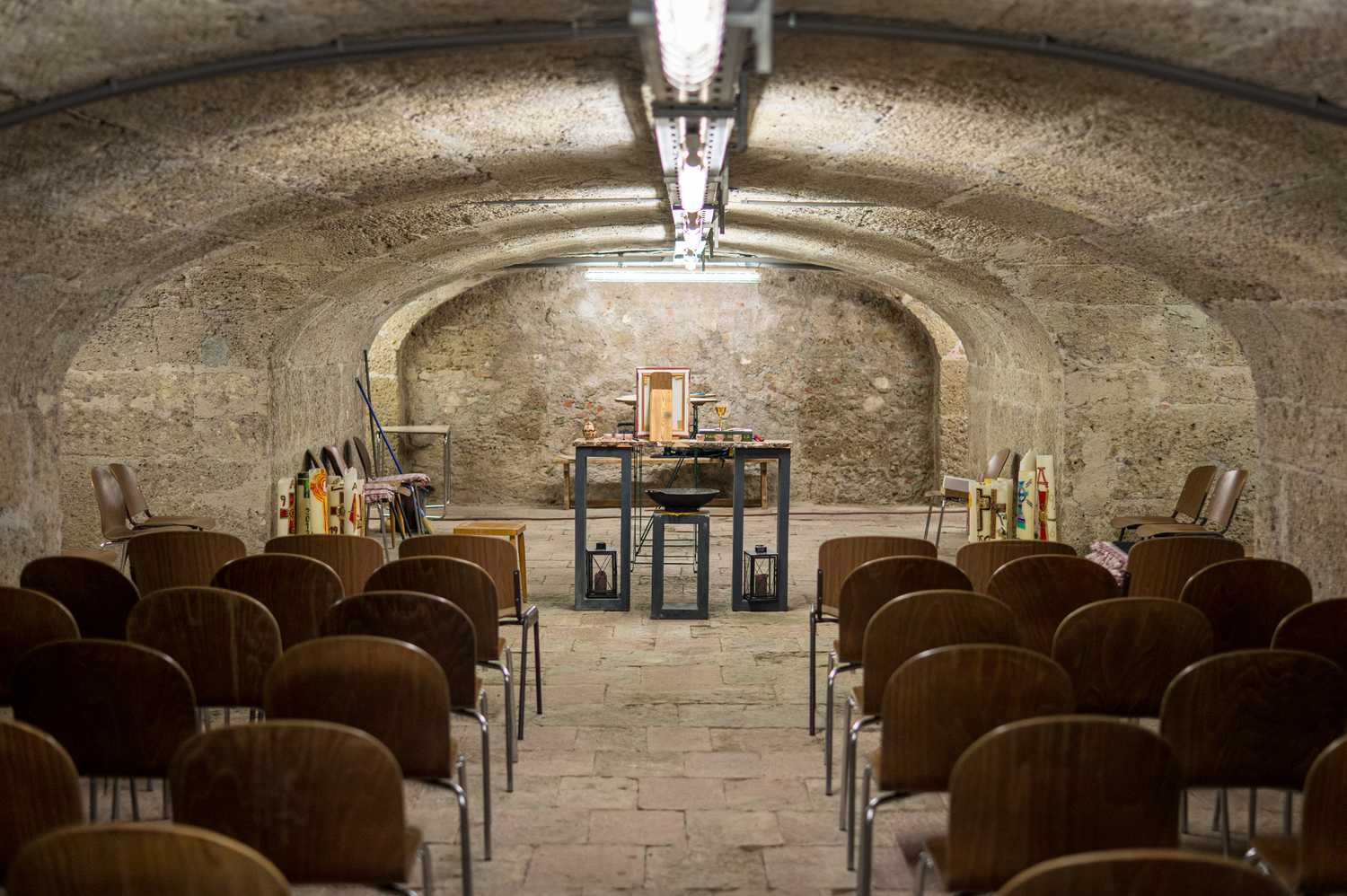 Die ehemalige Unterkirche der Pfarre Nonntal wurde saniert, und steht jetzt als festlicher Raum für Feiern zur Verfügung. Das historische Steingemäuer verleiht der Krypta eine besinnliche Atmosphäre und bildet eine schöne Kulisse für alle möglichen Veranstaltungen.