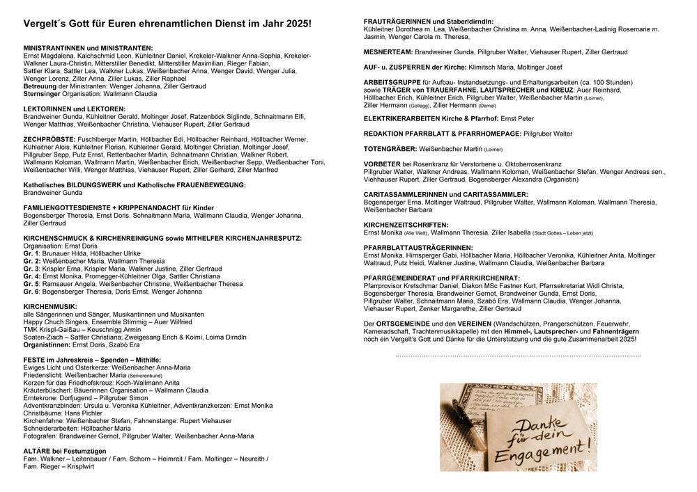 Für Euren ehrenamtlichen Dienst im Jahr 2025!