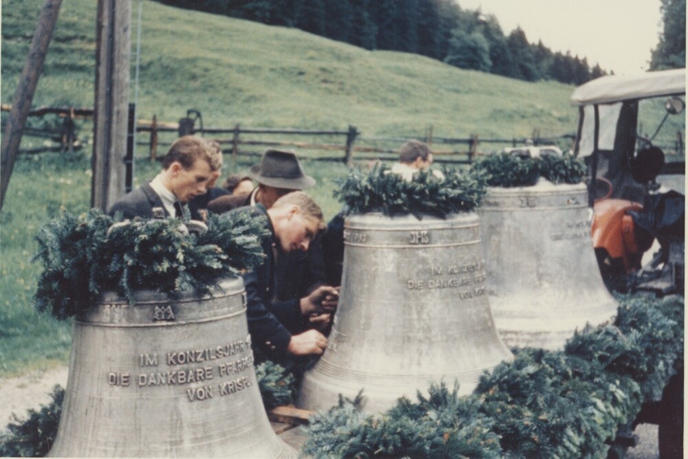 Unter Pfarrer Egon Katinsky Guss 1963 drei neuer Glocken bei Firma Gegenhuber in Grödig.