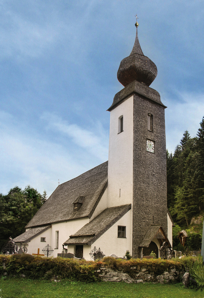 Im 28 Meter hohen Kirchturm hängen die vier Glocken der Pfarre Krispl: