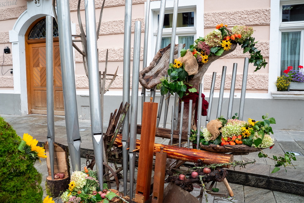 Beim Erntedankfest in Kuchl wurden alte Orgel Pfeifen versteigert.