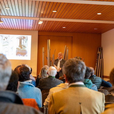Orgelbaumeister Christian Kögler aus St. Florian hat das Projekt im Pfarrzentrum Kuchl vorgestellt.