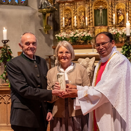Diakon Klaus Leisinger und seine Frau Andrea berührten mit ehrlichen Worten und dem Lied von Andrea an Klaus „Gern habn tuat guat“.