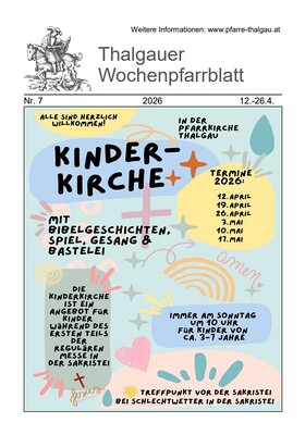 Dienstag: 08:30 Uhr jeden 1. u. 3. Dienstag Hl. Messe in Thalgauegg, jeden 2. 4. u. 5. Dienstag Hl. Messe in der Kreuzkapelle (Pfarrhof)