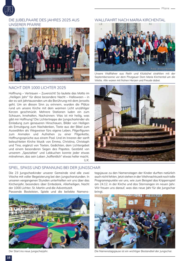 Viel Freude beim Lesen wünscht das Pfarrbriefteam der Pfarre Reith bei Kitzbühel!