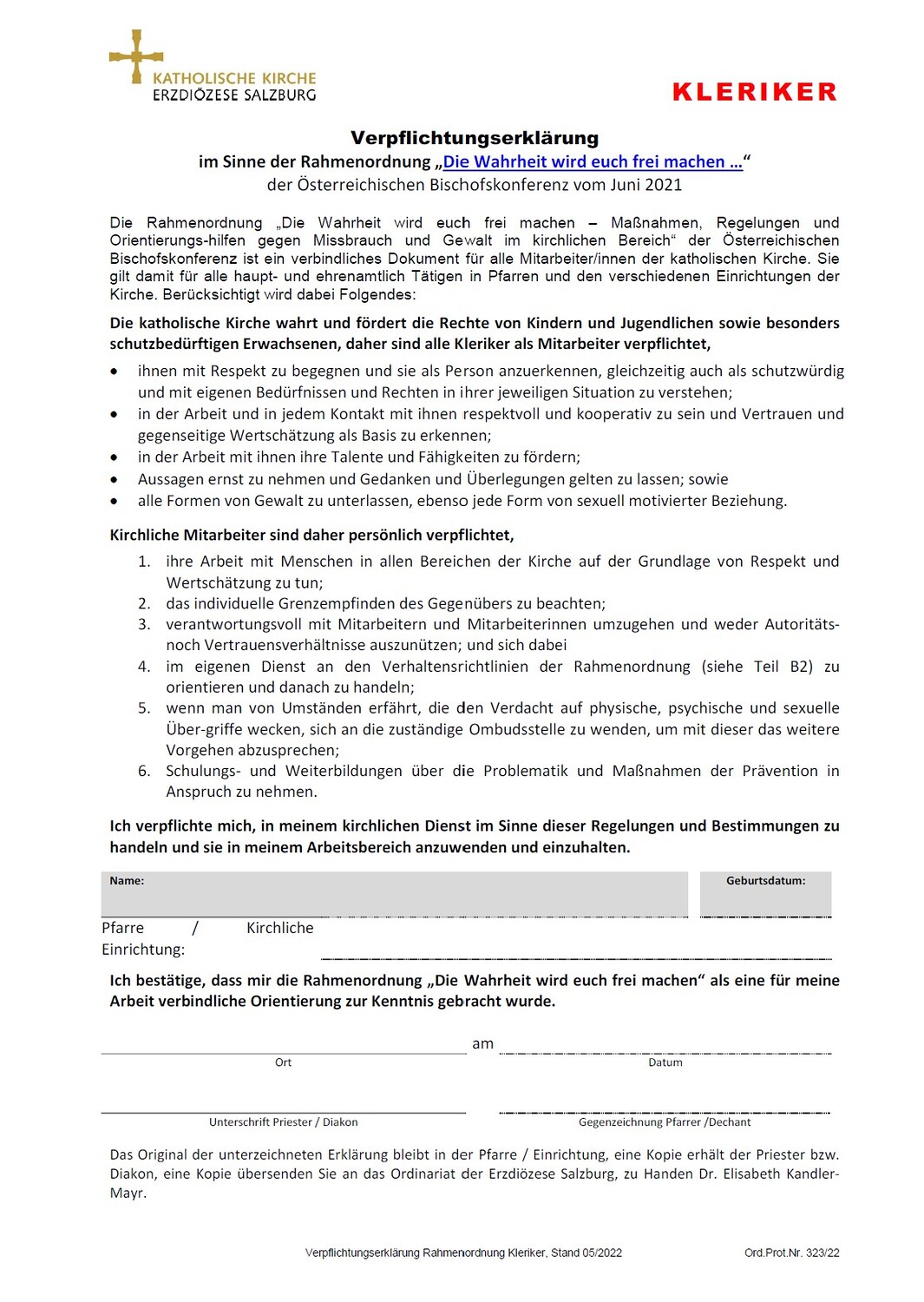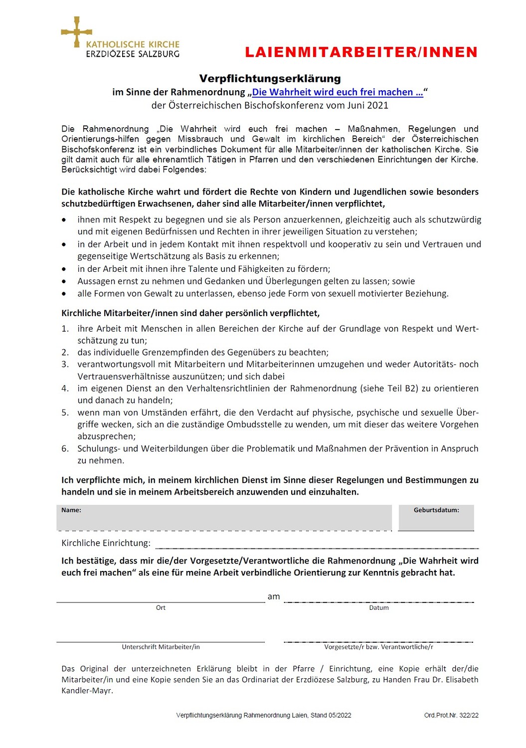 … wurde in der Vollversammlung der Österreichischen Ordenskonferenz am 10. Mai 2021 und in der Sommervollversammlung der Österreichischen Bischofskonferenz von 14. bis 16. Juni 2021 beschlossen. Die Diözesanbischöfe erteilten der Verfahrensordnung (Teil C) dieser Rahmenordnung einzeln ihre Zustimmung im Sinne can. 455 § 4 CIC 1983. Mit dem Schreiben vom 29. Mai 2021 teilte die Kongregation für die Glaubenslehre mit, dass ihrerseits keine Einwände gegen die vorliegende Neufassung der Rahmenordnung bestehen. Die Rahmenordnung trat mit 1. September 2021 in Kraft.