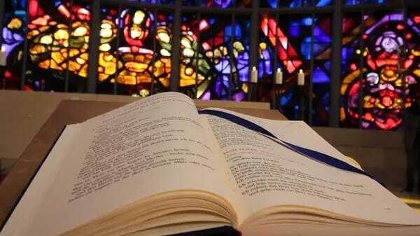 Die einzelnen biblischen Bücher werden in Kapiteln und Versen angegeben (z.B. Matthäusevangelium 22,35-40).