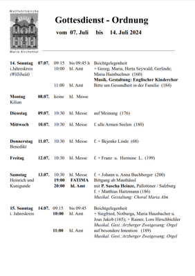 Gottesdienstordnung 07. - 14. Juli